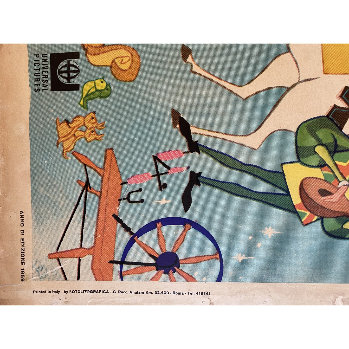 Il manifesto cinematografico italiano del 1959 per La Bella Addormentata nel Bosco è un gioiello dell’illustrazione d’epoca, realizzato con la ricchezza cromatica e la teatralità tipiche della promozione Disney degli anni Cinquanta. L’opera presenta una composizione dinamica e affollata, pensata per catturare l’immaginazione del pubblico di tutte le età.